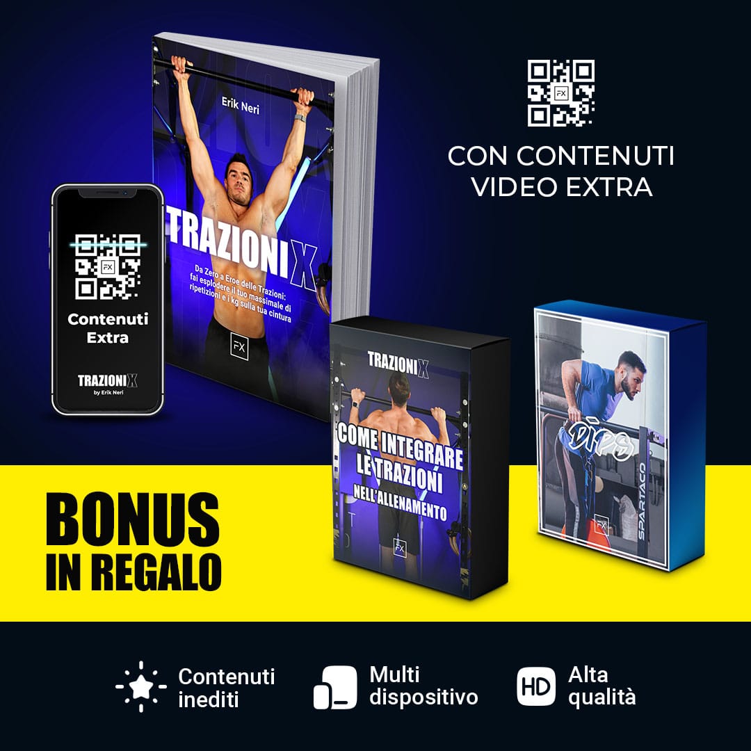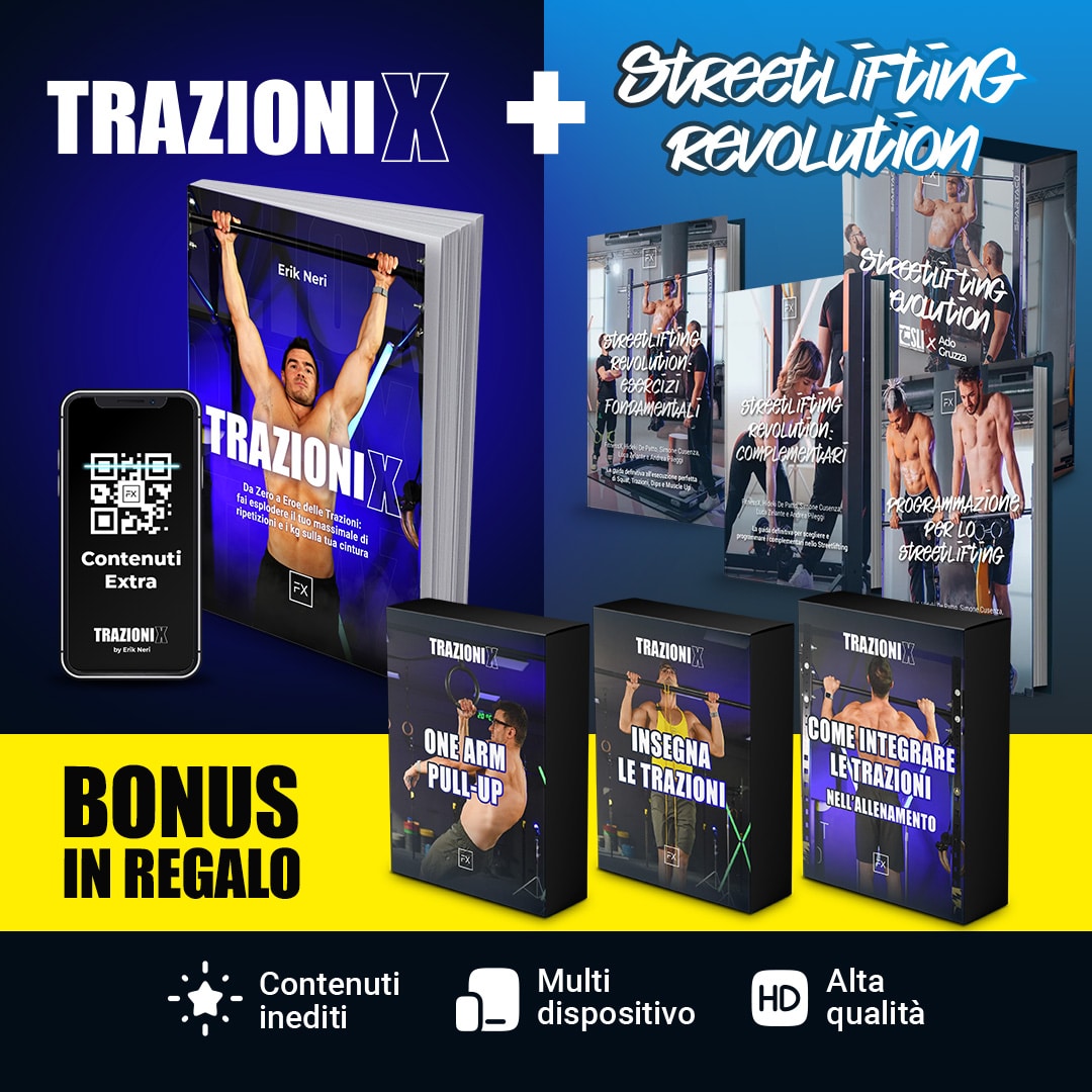 Trovi anche una video lezione bonus specifica su “Come inserire correttamente le Trazioni nella tua routine” senza interferire con gli altri esercizi.