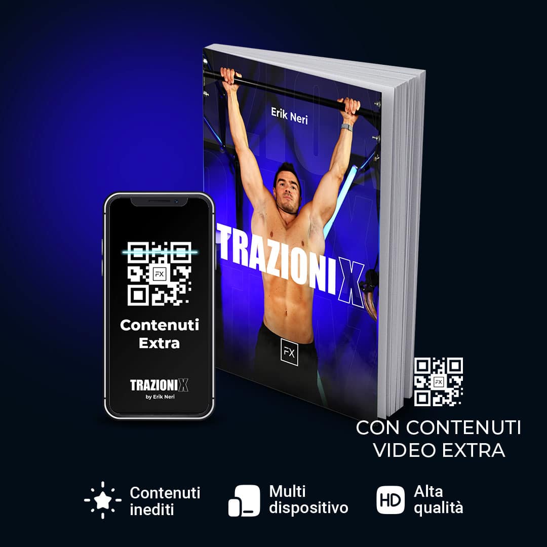 Per questo abbiamo arricchito Trazioni X con 35 QR code: ti basta inquadrarli per accedere a video che mostrano esecuzioni reali, varianti, propedeutiche e gli errori più frequenti.
